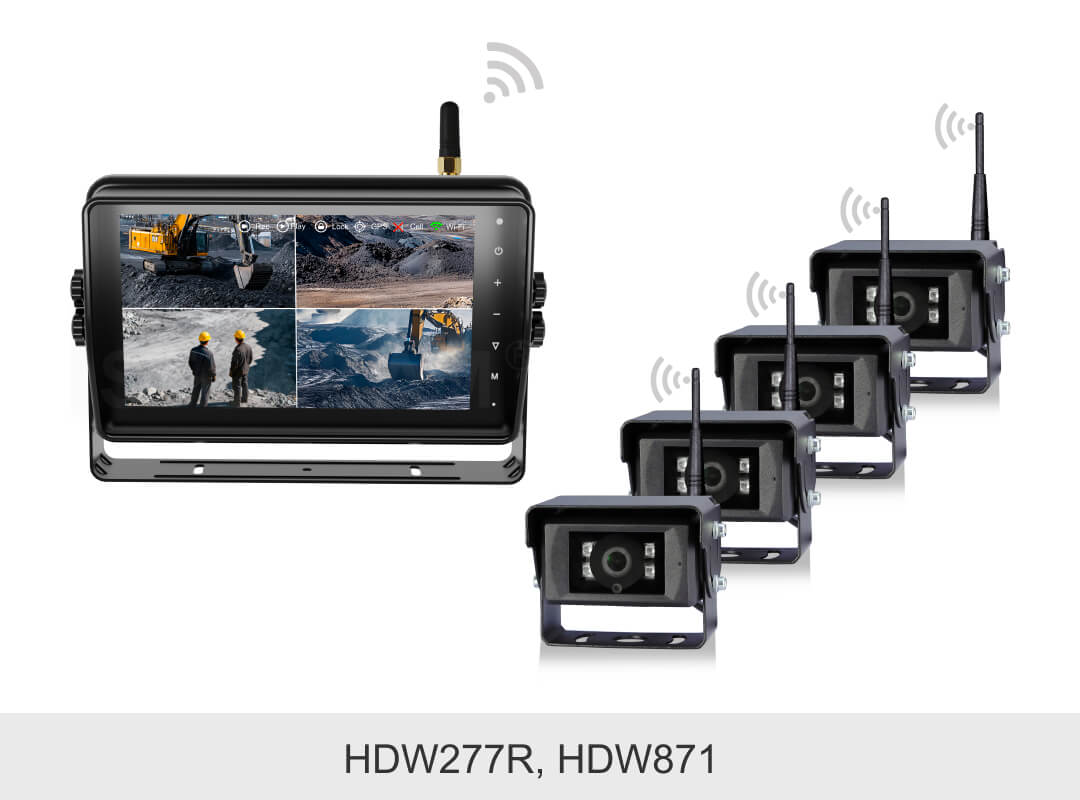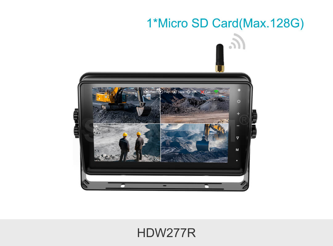 STONKAM録画機能付き 7インチHD防水ワイヤレス車載モニター、IP66防水ケースを採用し、録画機能とタッチスクリーン機能を一体化しています。見通し距離180メートルまで安定した信号伝送と優れた耐干渉性を実現。マルチ画面表示モードに対応し、トラック、フォークリフト、鉱山用ダンプトラックなど、多様な車種に幅広く適用できます。
