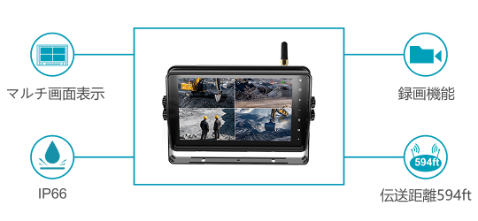 録画機能付き 7インチHD防水ワイヤレス車載モニター
